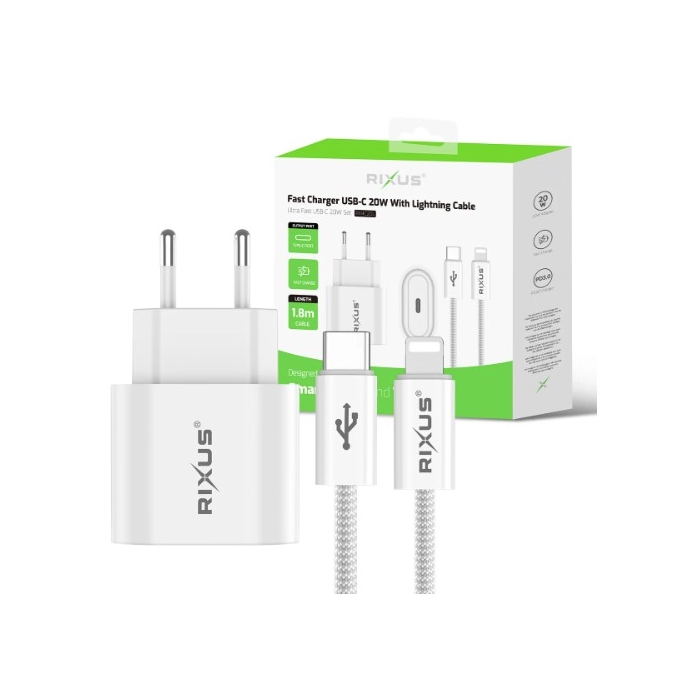 Comprar Carregador Rixus RXHC20L Fast Charger 20W USB-C para USB-C com Cabo Lightning 1.8m Branco da RIXUS na Sintanet.pt - Loja online de telemóveis