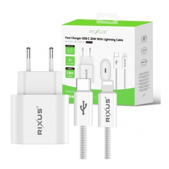 RIXUS : Carregador Rixus RXHC20L Fast Charger 20W USB-C para USB-C com Cabo Lightning 1.8m Branco