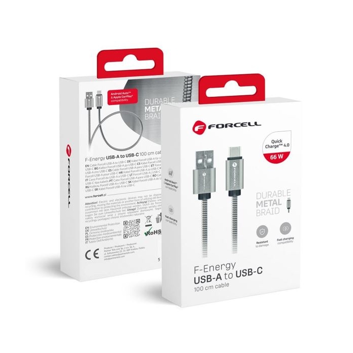 Cabo de Dados USB-A para USB-C FORCELL F-ENERGY Metal C234 QC3.0 66W 1m