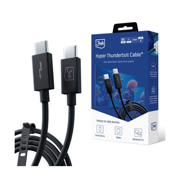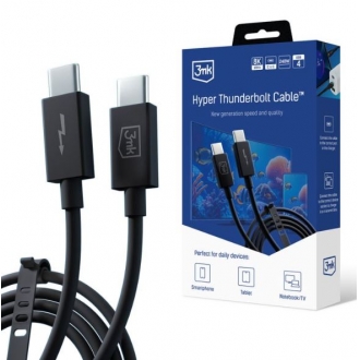 3MK : Cabo de Dados USB-C para USB-C 240W 3MK Hyper Thunderbolt Preto