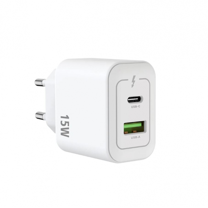 Carregador Rixus RXHC15 15W (1xUSB-C + 1xUSB-A) Branco