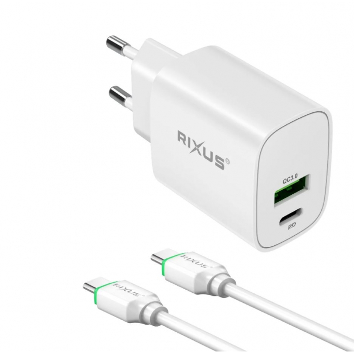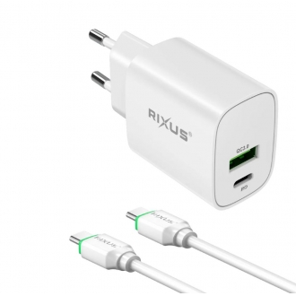 Carregador Rixus RX90CC 20W USB-C para USB-C com Cabo USB-C 1m Branco