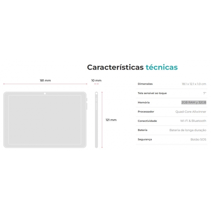 Tablet para Crianças SaveFamily Kids 7" 2GB/32GB Rosa
