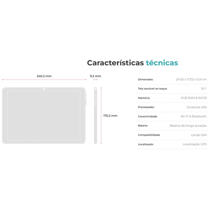 Tablet para Criança/Juventude Evolution SaveFamily Kids 10" 4GB/64GB Rosa