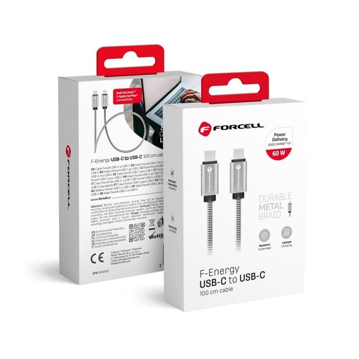 Comprar Cabo de Dados USB-C para USB-C FORCELL F-ENERGY Metal C237 PD QC4.0 3A 60W 1m da FORCELL na Sintanet.pt - Loja online de telemóveis