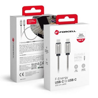 Comprar Cabo de Dados USB-C para USB-C FORCELL F-ENERGY Metal C239 PD QC4.0 5A 100W E-mark 2m da FORCELL na Sintanet.pt - Loja online de telemóveis