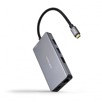 Hub USB-C 3 x USB A 3.2 + 2X HDMI 1 HDMI RJ45 TF SD NANOCABLE Cinza