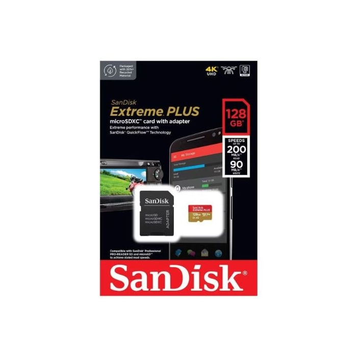 Comprar Cartão de Memória 128GB Sandisk Extreme Plus SDSQXBD-128G-GN6MA 200MB/s da SANDISK na Sintanet.pt - Loja online de telemóveis