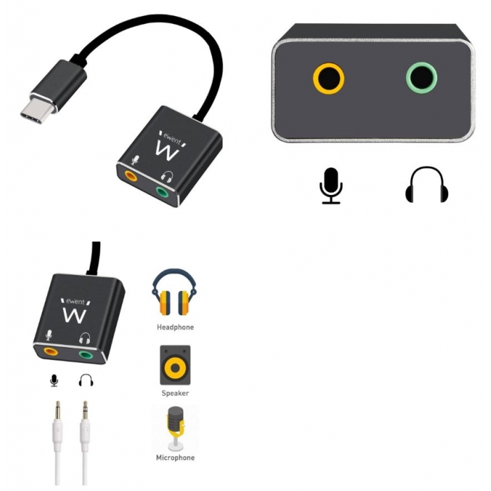 Adaptador Audio Ewent EC1645 USB Type C para 2xJack 3.5mm Fêmea