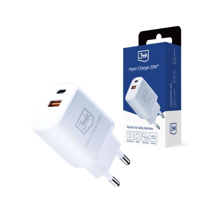 Comprar Carregador 3MK Hyper Charger 20W USB-A e USB-C Branco da 3MK na Sintanet.pt - Loja online de telemóveis